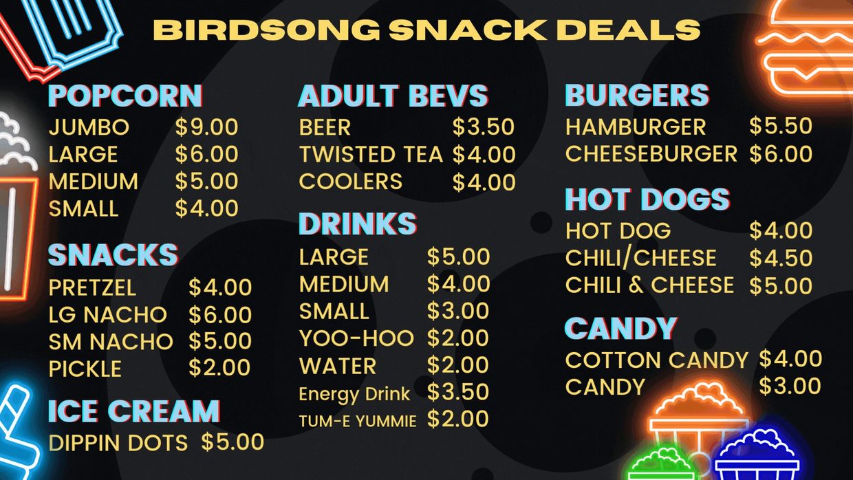 Info Line AI (731)584-8787 Email birdsongdrivein@gmail.com
